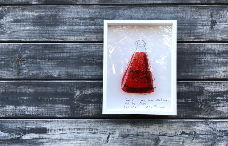 2007年イタリア旅行の帰り スイス航空の中でサービスされたカンパリーソーダ お酒なのに鮮やかな赤色で 三角形の小瓶に入ってるシンプルで いまでも強く印象に残っています