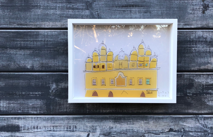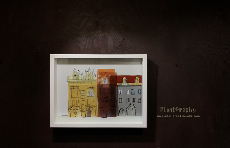 明るく鮮やかで透明感が必要な表現のために工夫した表現方法です ガラスの裏から着色し反射光 透過光 影 光の方向と強さによって描かれたモチーフが変化します 奥行きのあるフレームの組み合わせで 色が浮いたように感じられます 新しい表現として フロートグラフィーと名付けました